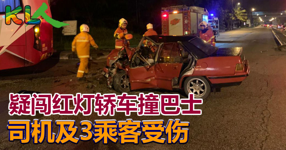 疑闯红灯轿车撞巴士 司机及3乘客受伤